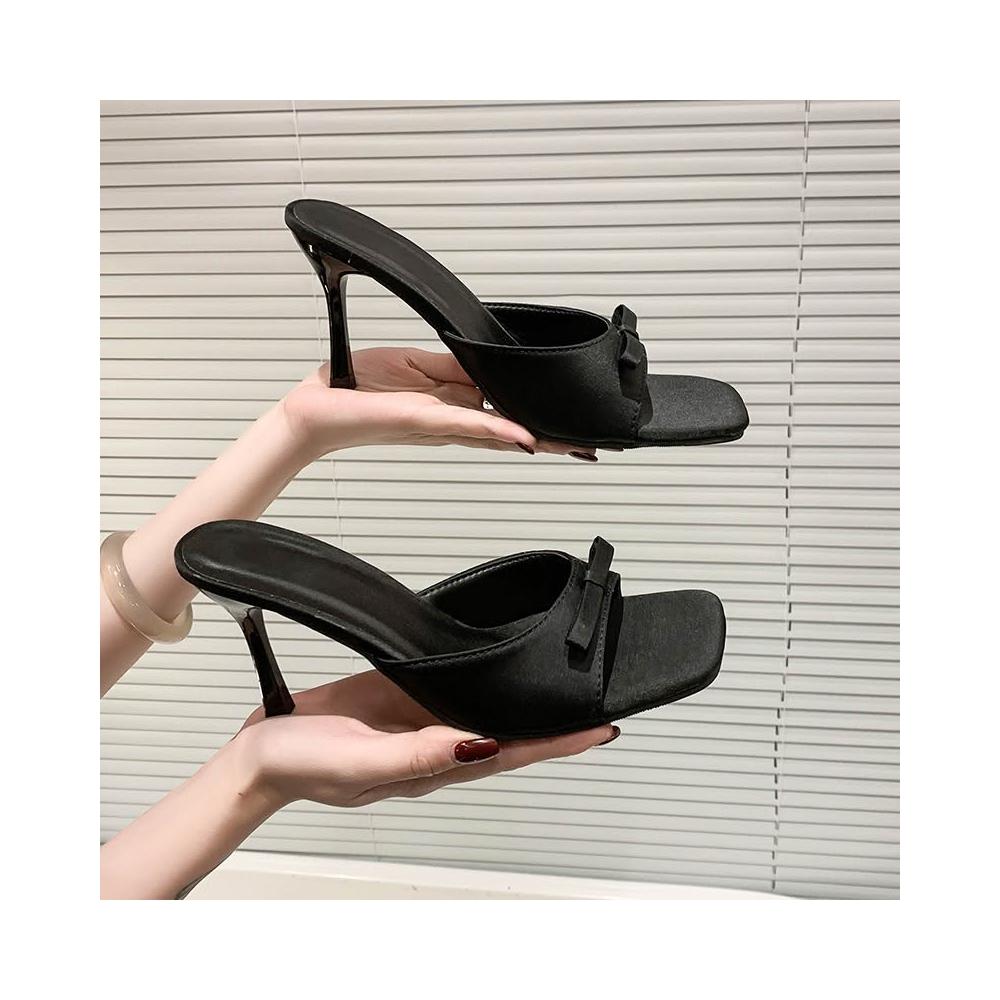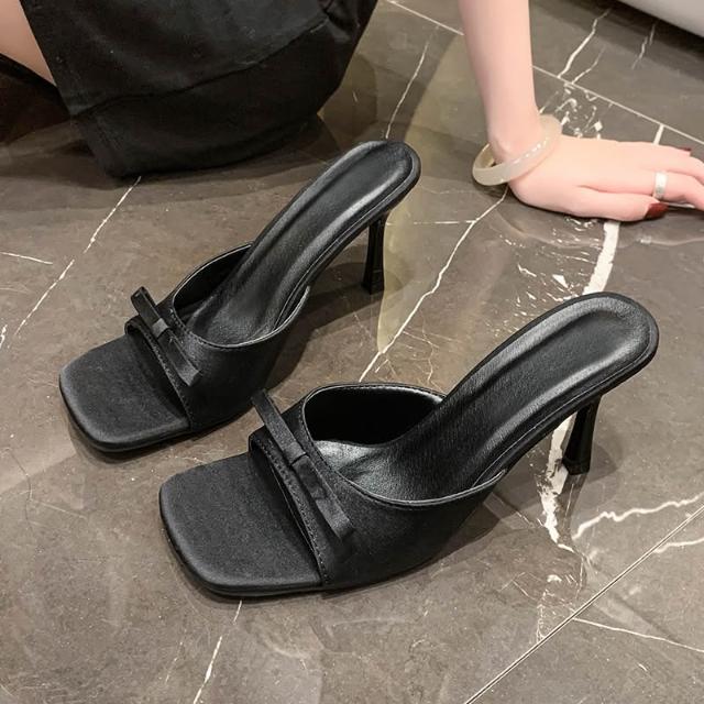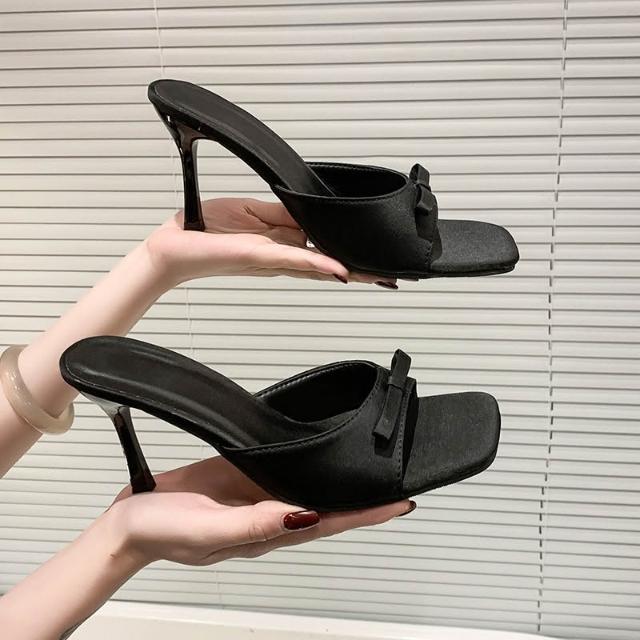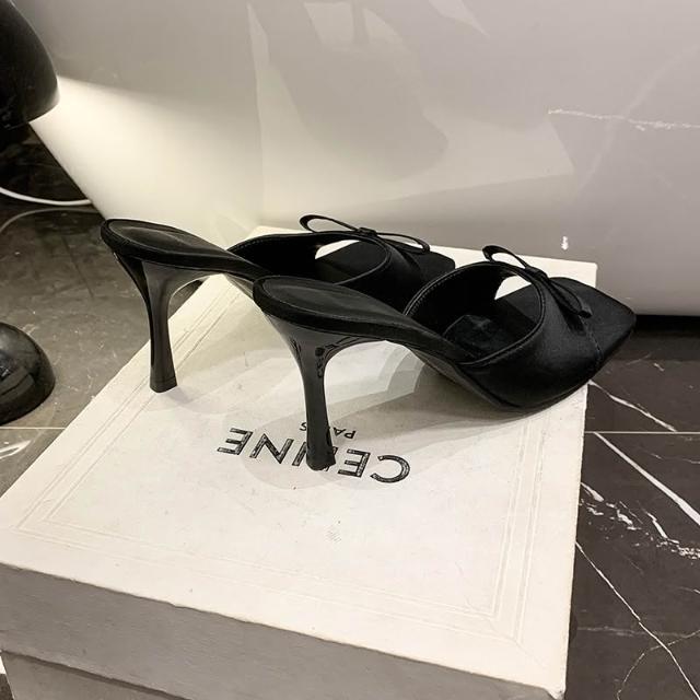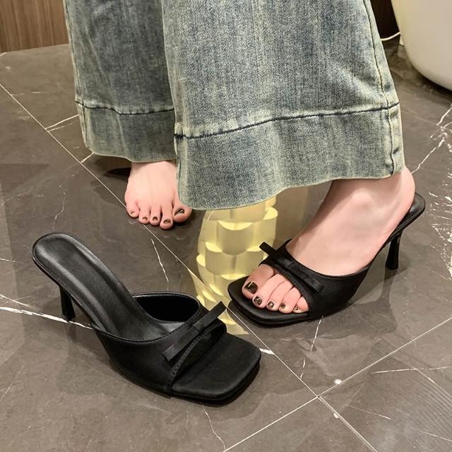 免運 免稅 高跟鞋涼拖鞋女夏季新款方頭大碼一字型高級感外穿細跟蝴蝶結