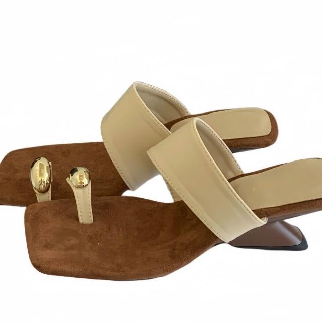 免運 免稅 ~新款法式復古方頭粗跟套趾涼拖鞋女夏外穿金屬一字扣
