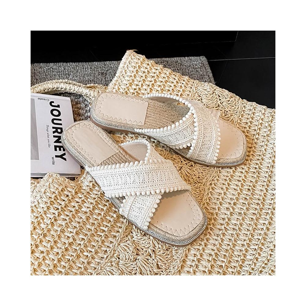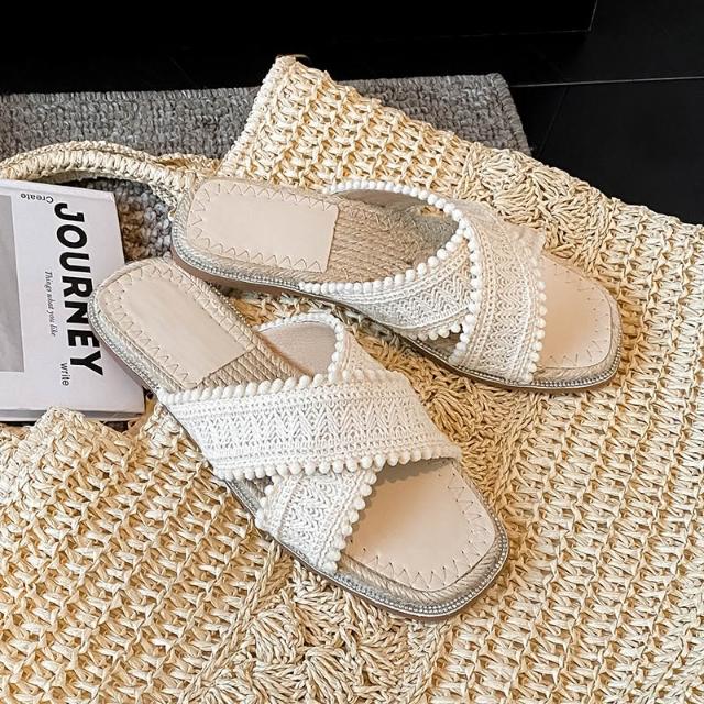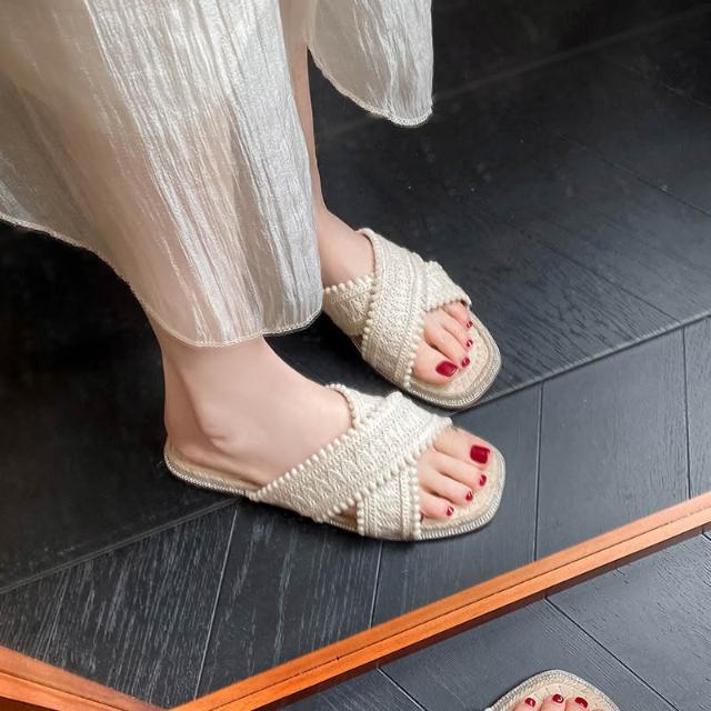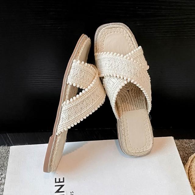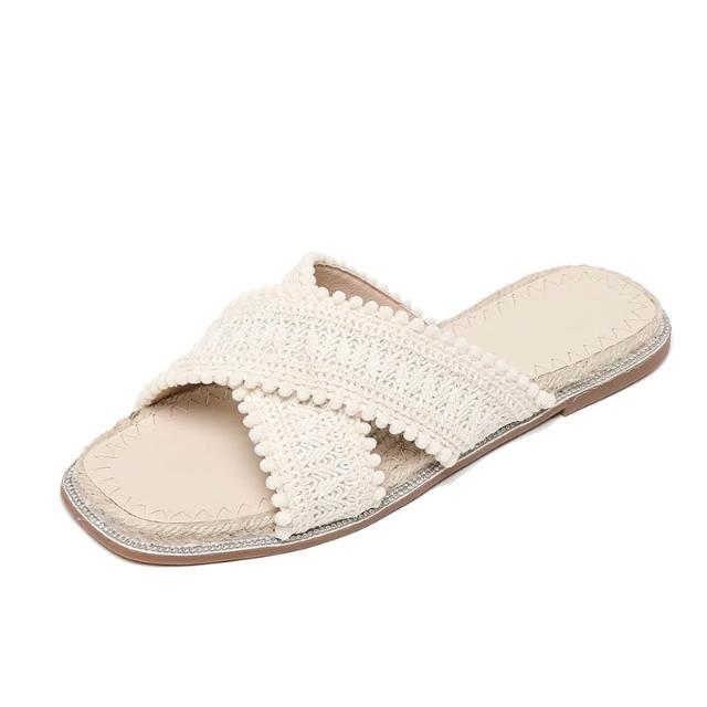 免運 免稅 V8-06 草編拖鞋女夏外穿新款仙女波西米亞涼鞋度假平底海邊沙灘鞋