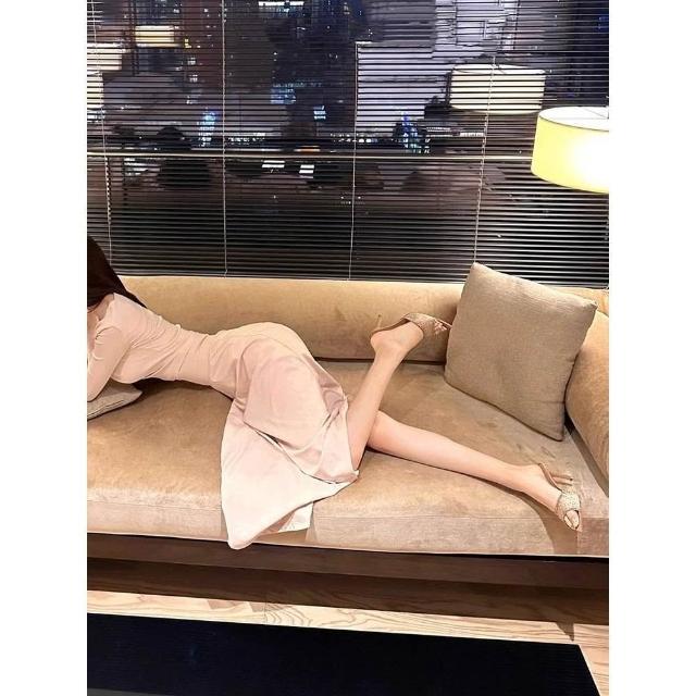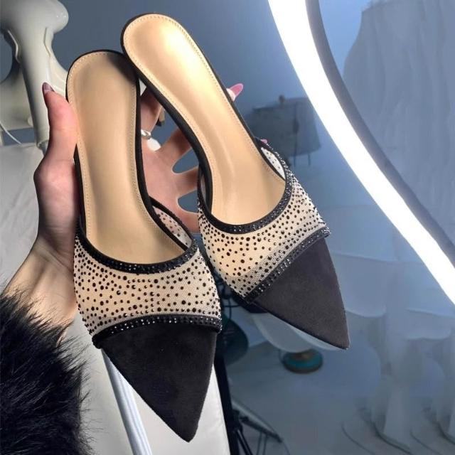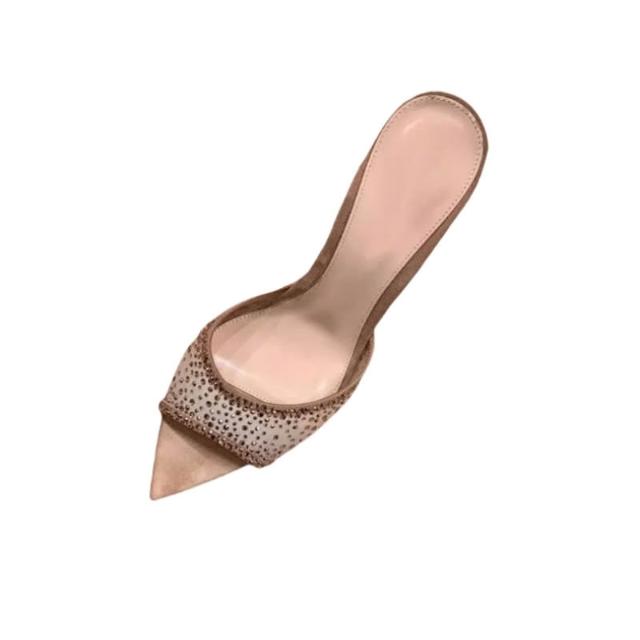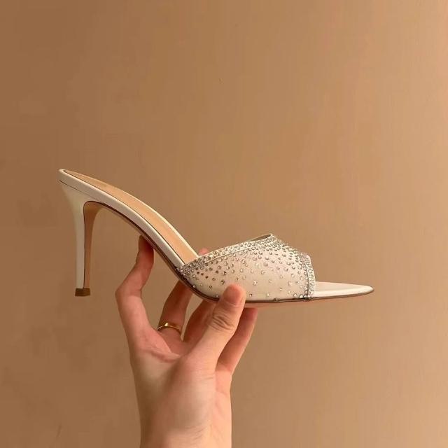 免運 免稅 2026新款露趾尖頭網紗水鉆一字拖女夏外穿氣質細跟高跟鞋涼拖鞋女