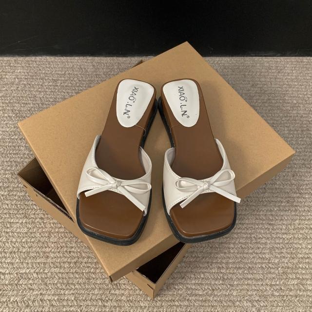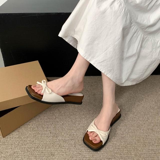 免運 免稅 白色復古坡跟增高一字拖鞋女夏季外穿新款配裙子法式涼拖鞋子
