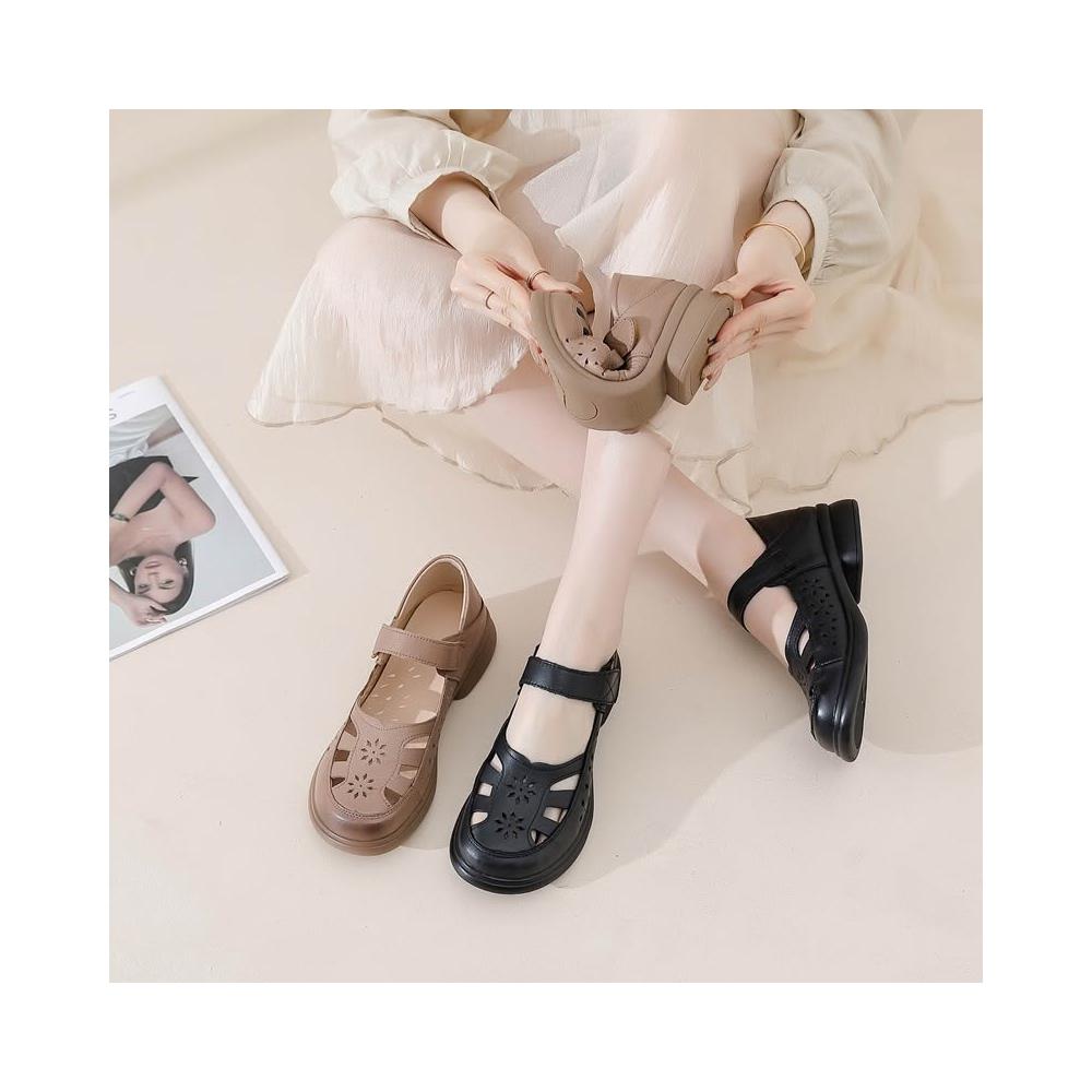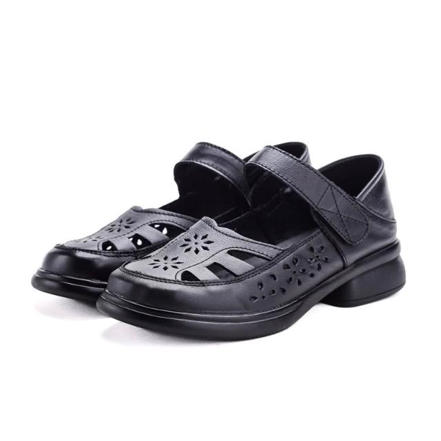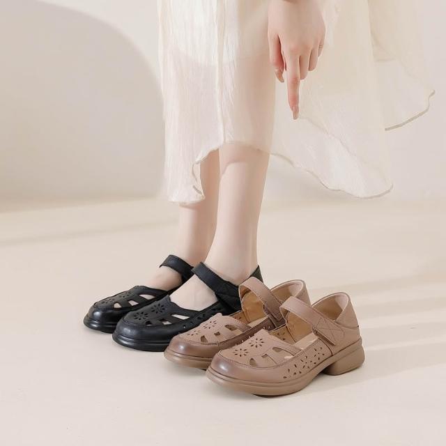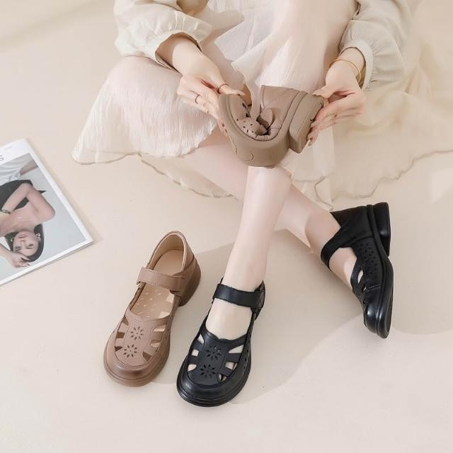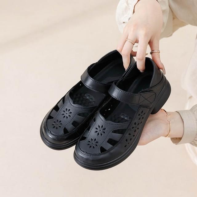 免運 免稅 真皮牛皮媽媽鞋厚底镂空包頭涼鞋女夏外穿軟底單鞋新款休閑鞋