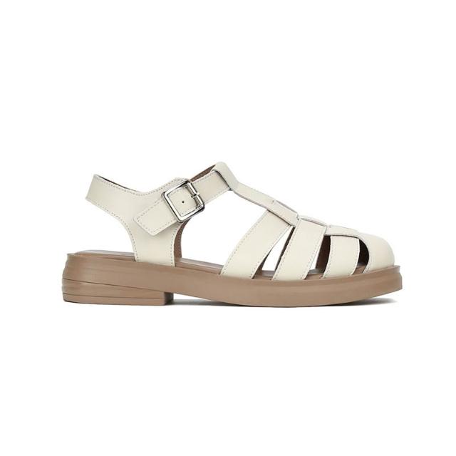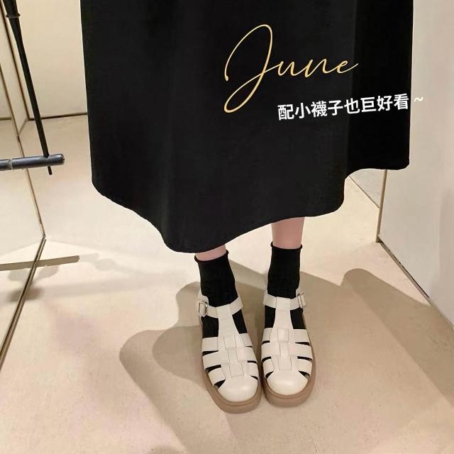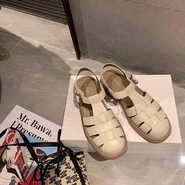 免運 免稅 真皮包頭涼鞋女夏外穿新款配裙子厚底沙灘羅馬鞋仙女平底豬籠單鞋