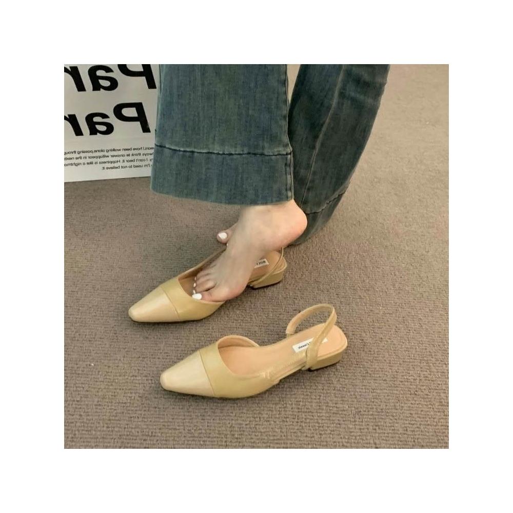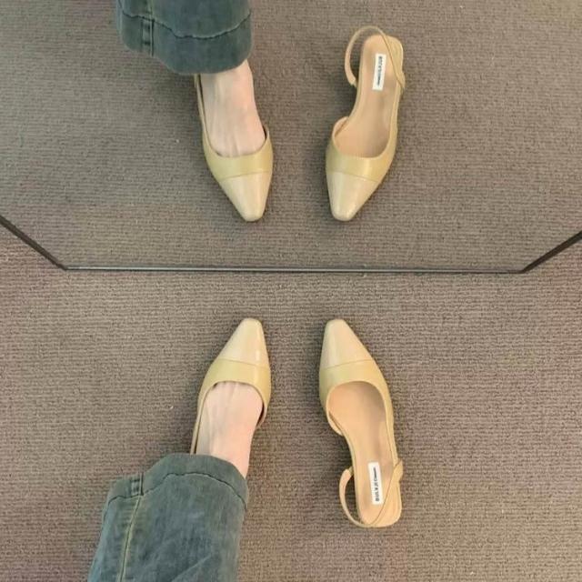 免運 免稅 低跟包頭涼鞋女法式溫柔晚晚裸色尖頭小香風淑女粗跟後空氣質單鞋