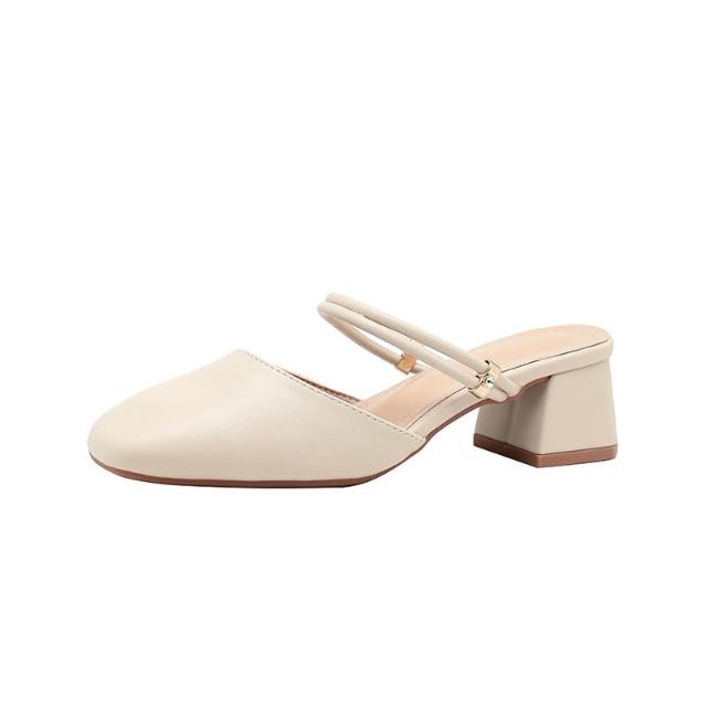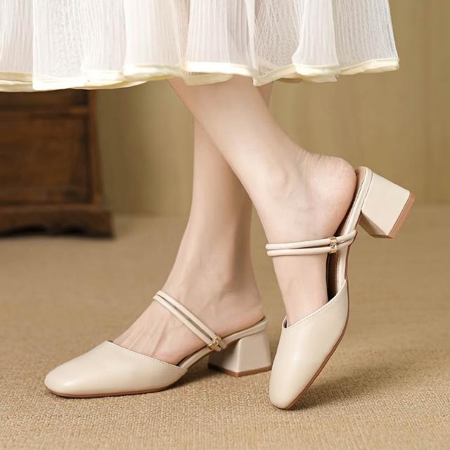 免運 免稅 無後跟懶人一腳蹬兩穿配裙子粗跟包頭半拖鞋女夏外穿中跟溫柔涼鞋