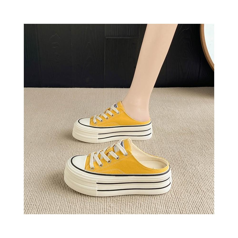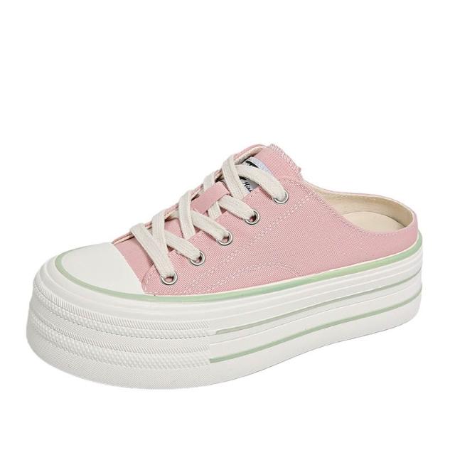 免運 免稅 厚底一腳蹬包頭帆布半拖鞋女夏外穿新款小白鞋休閑小個子松糕板鞋