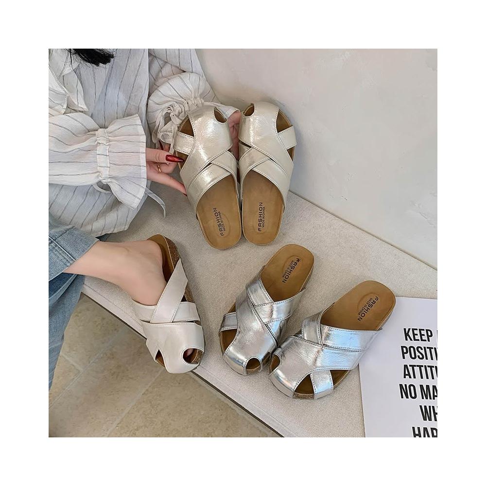 免運 免稅 大碼女鞋41-43復古法式包頭半拖鞋女夏外穿厚底勃肯鞋镂空編織涼
