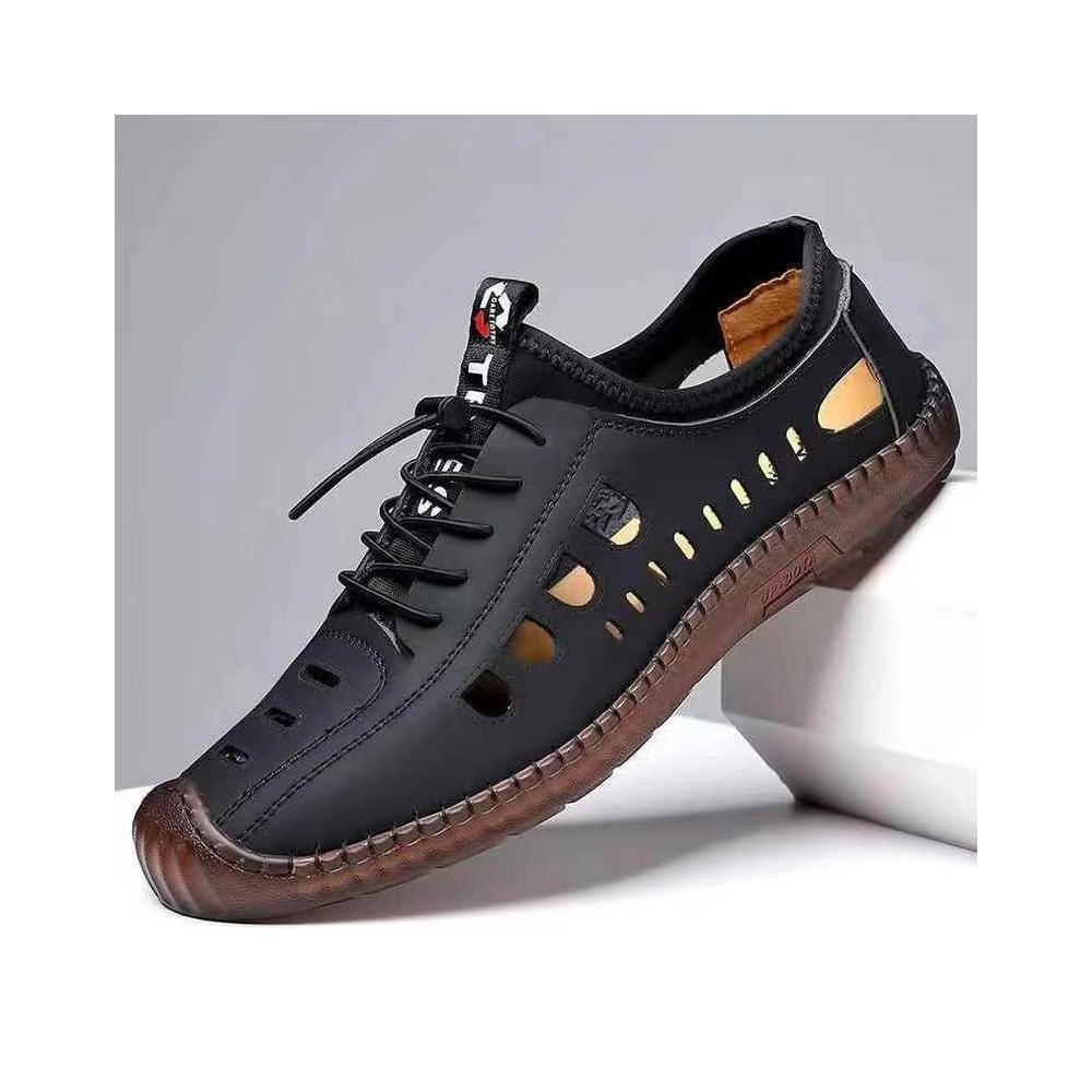免運 免稅 男士镂空皮鞋夏季涼鞋軟皮軟底潮流百搭透氣洞洞鞋跨境新款休閑鞋