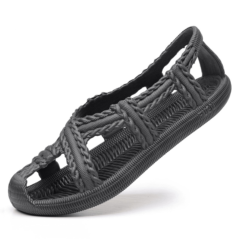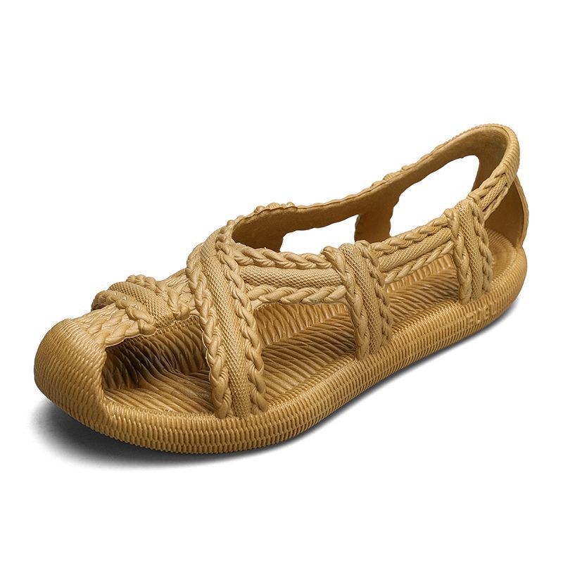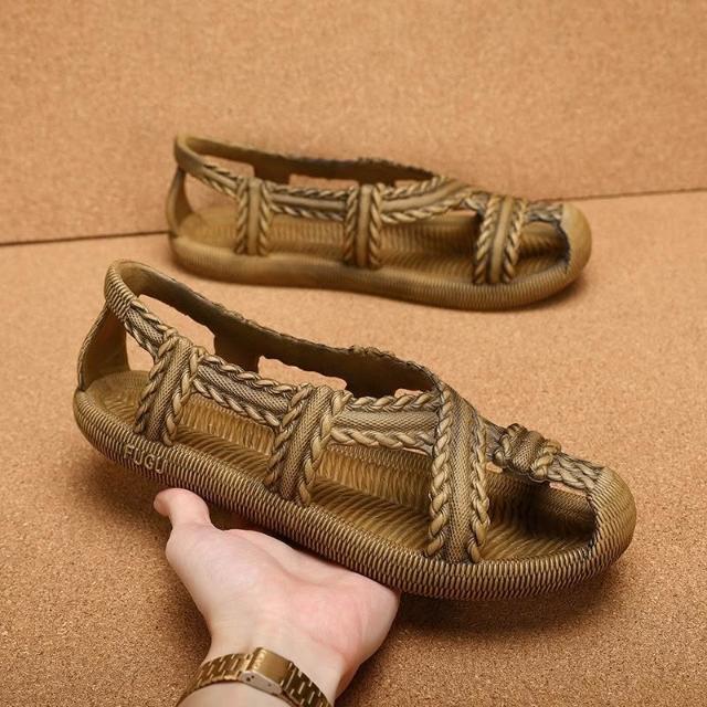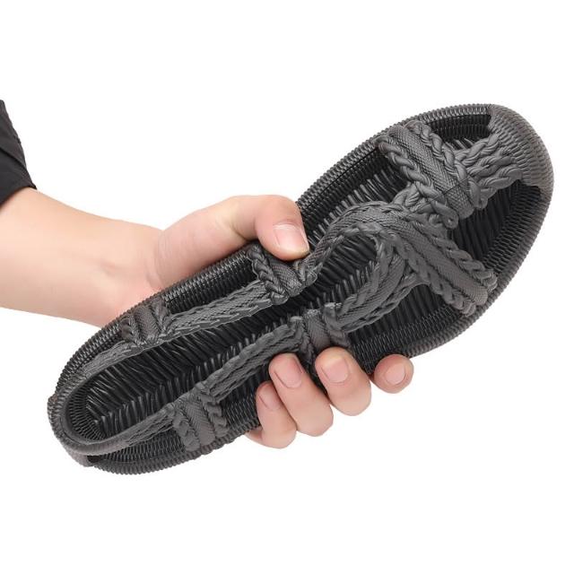 免運 免稅 夏季復古編織鞋軟底透氣防滑沙灘鞋男女涼鞋橡膠藤編草鞋平底涼爽