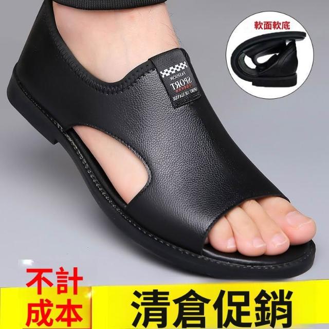 免運 免稅 男士軟皮涼鞋夏季透氣沙灘鞋羅馬男款軟底防臭休閑防滑涼皮鞋