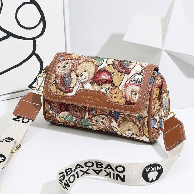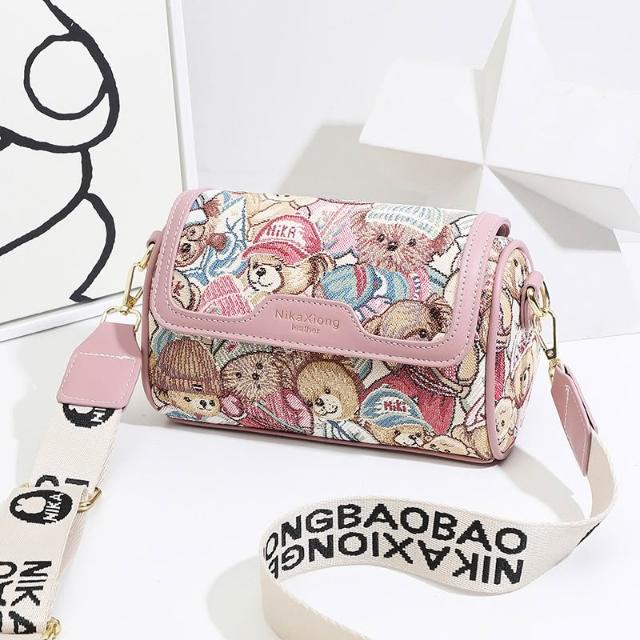 免運 免稅 可愛小熊斜挎包印花韓版時尚小眾撞色單肩包新款簡約手提包女