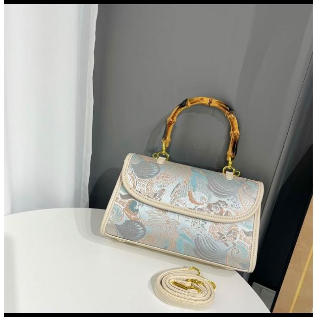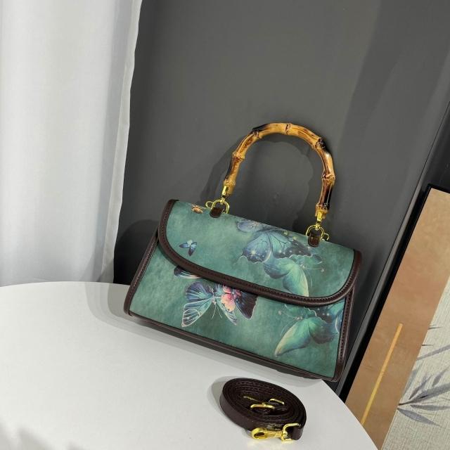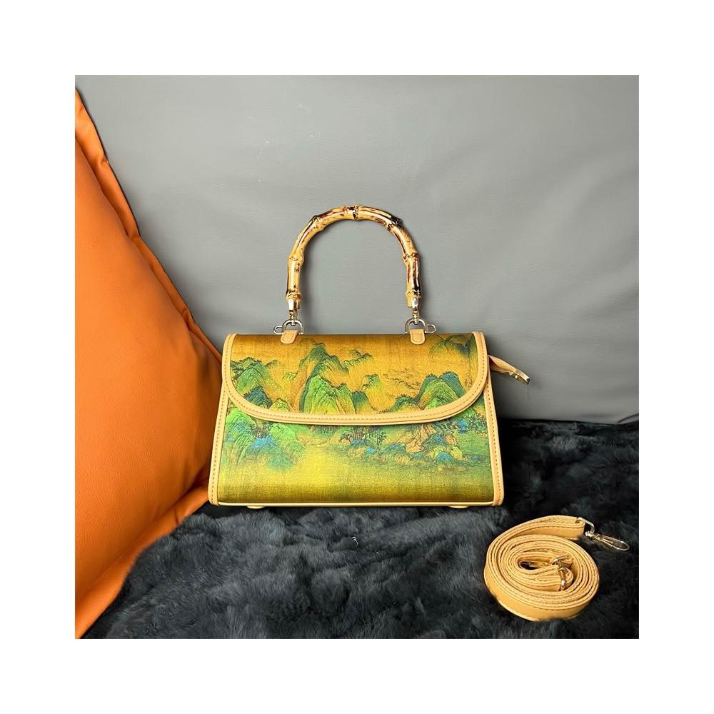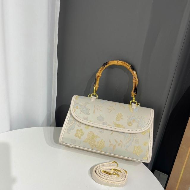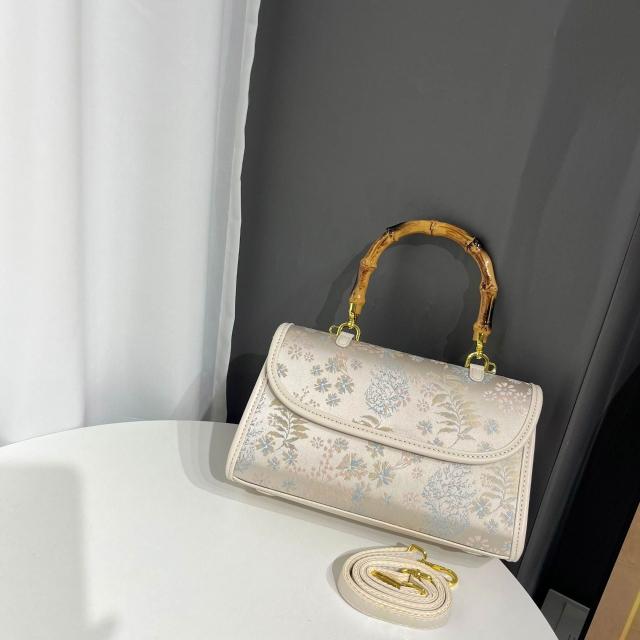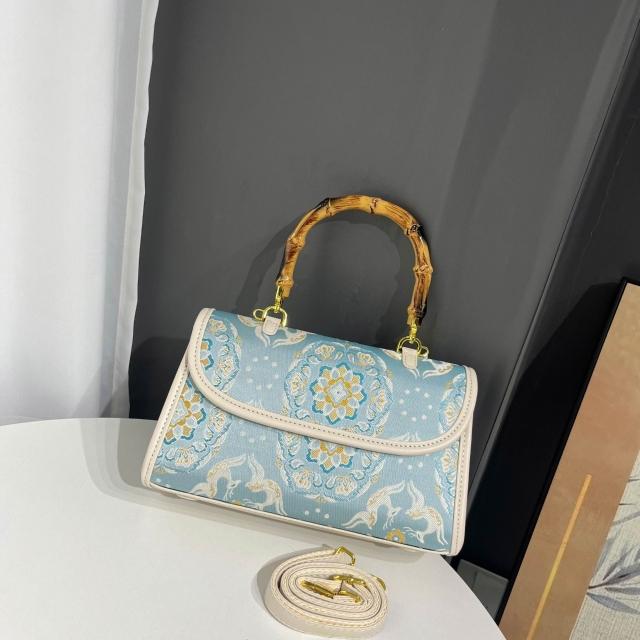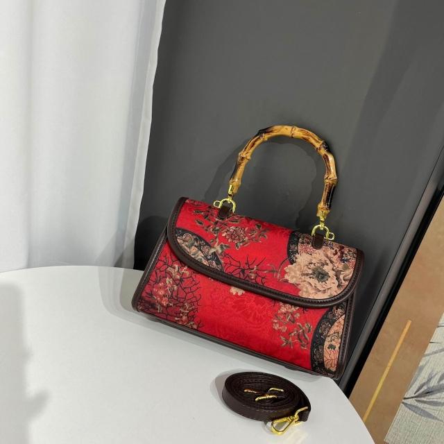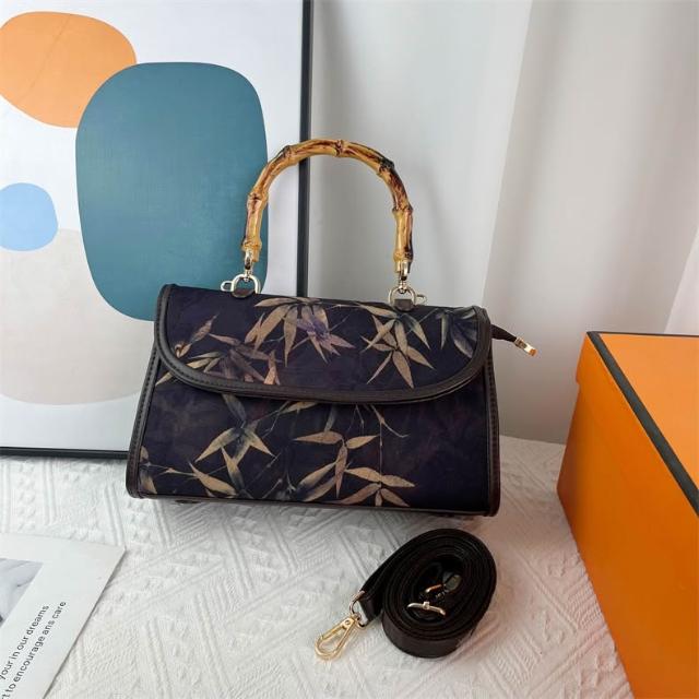 免運 免稅 跨境單肩包女大氣中國風復古圖案手提包香雲紗優雅氣質竹節斜挎包