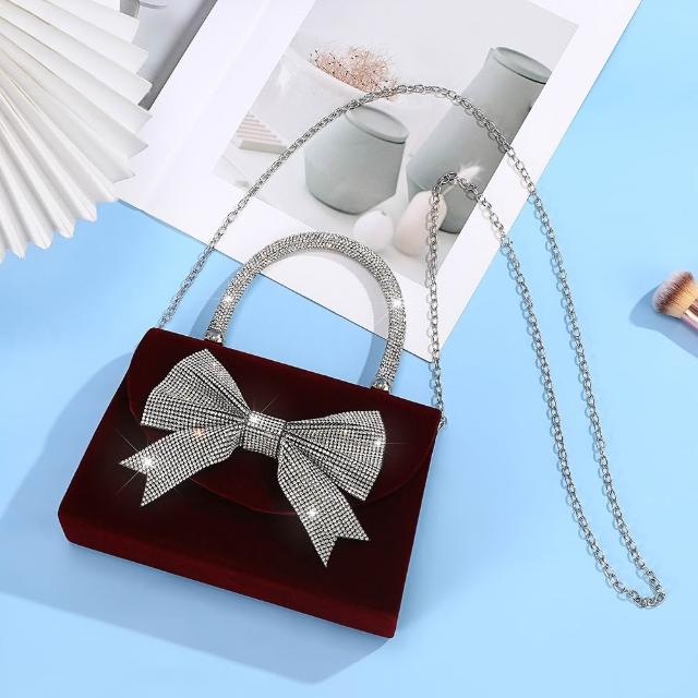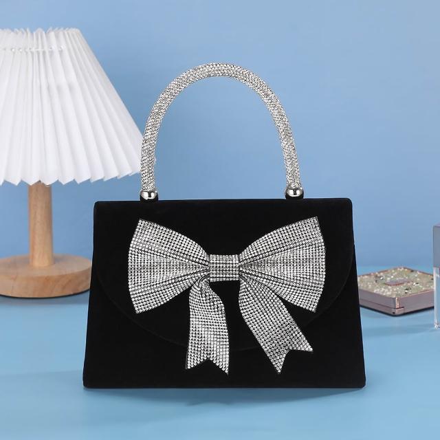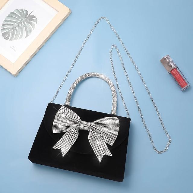 免運 免稅 嚴選時尚蝴蝶結晚宴包女士禮服閃亮搭配輕奢風斜挎小方包宴會包包