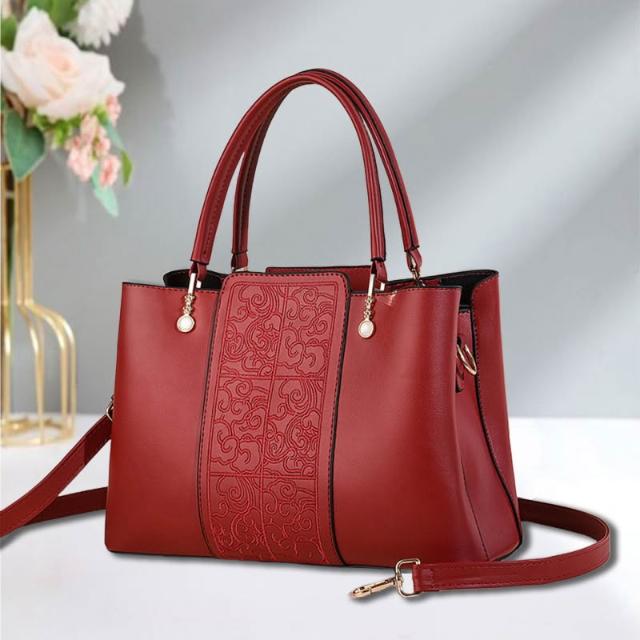 免運 免稅 大紅女士手提包國風花紋女單肩斜挎包百搭時尚送媽媽包bags