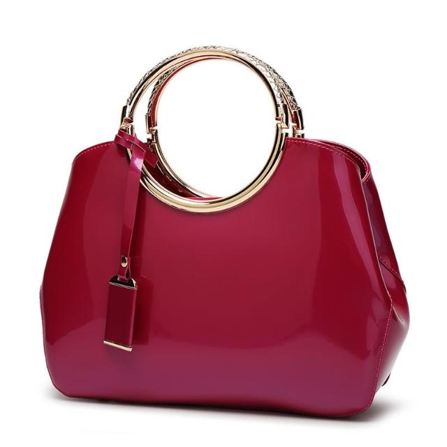 免運 免稅 跨境新款漆皮亮面女包紅色新娘結婚手提包女式單肩斜挎包批發