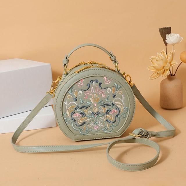 免運 免稅 包包斜挎包女春季新款國風刺繡手拎包高級感新中式時尚小圓包跨境