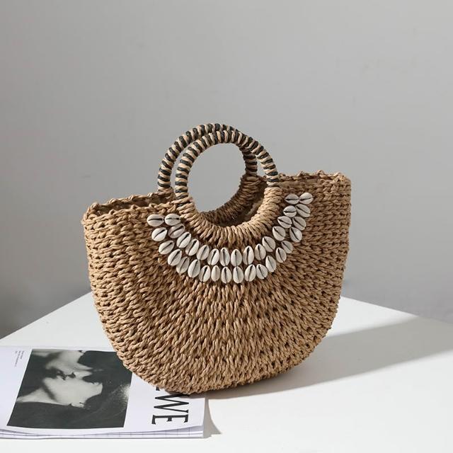 免運 免稅 新款復古草編包手提半圓貝殼手工草包編織包女海邊度假沙灘包