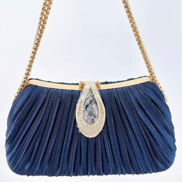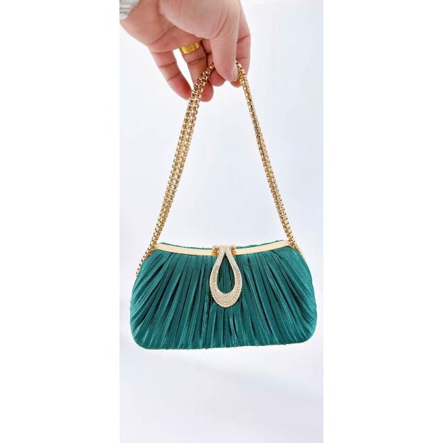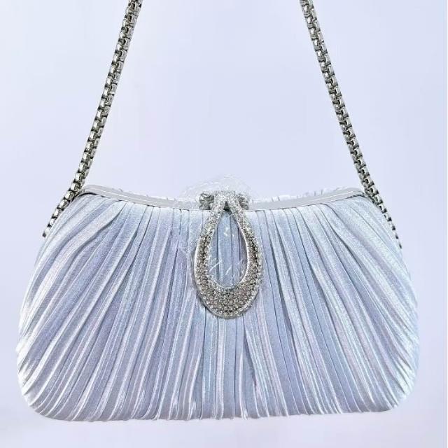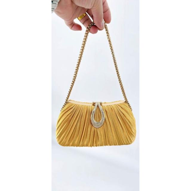 免運 免稅 跨境新款晚宴手提包女士全手工褶皺珍珠宴會包名媛小香風包爆款
