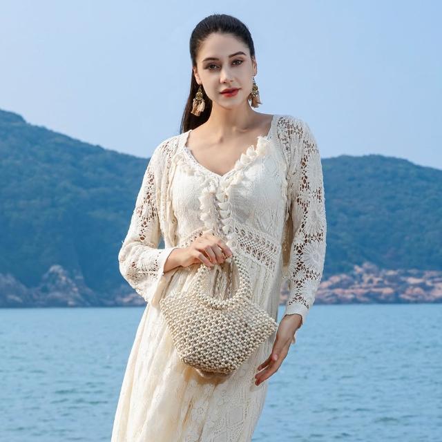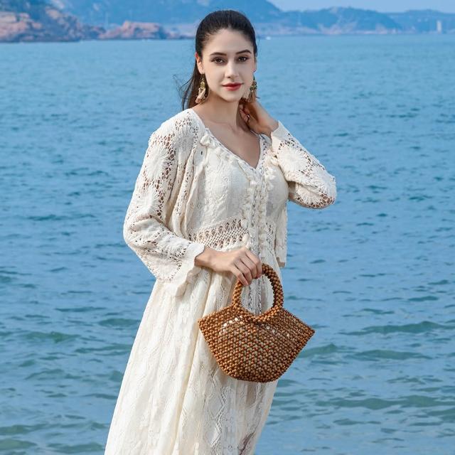免運 免稅 OLEI手工編織包包女大容量木珠包海邊度假沙灘包休閑旅遊手提包女