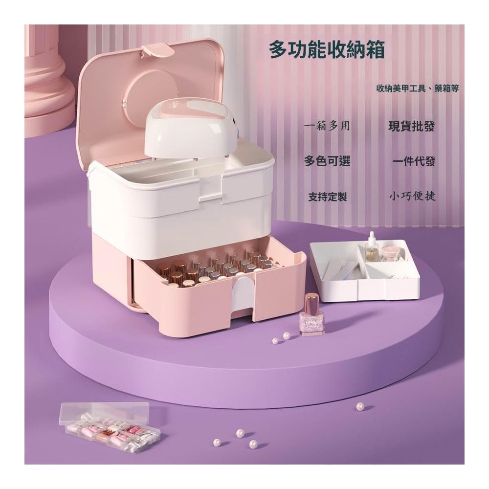 免運 免稅 手提化妝品收納盒防灰塵 口紅甲油膠塑料收納盒 飾品發飾收納箱