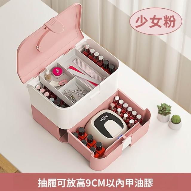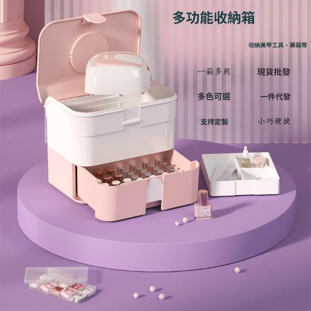 免運 免稅 手提化妝品收納盒防灰塵 口紅甲油膠塑料收納盒 飾品發飾收納箱