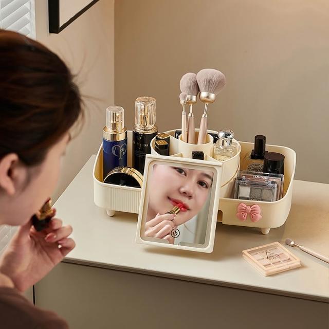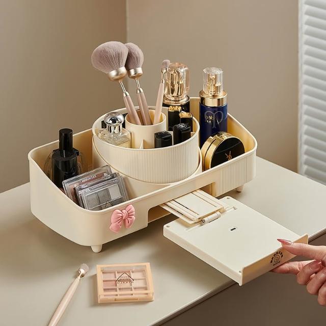 免運 免稅 桌面化妝品收納盒抽屜式宿舍梳妝臺化妝鏡分格置物架整理化妝盒