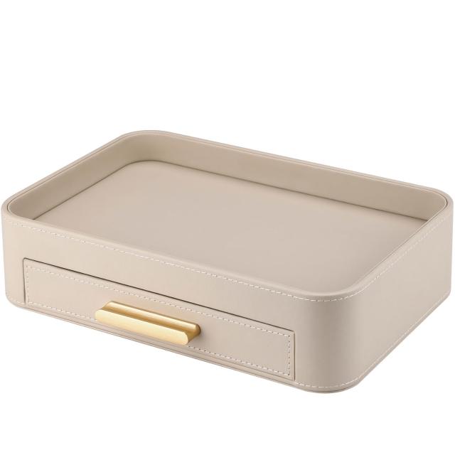 免運 免稅 新式托盤輕奢奶油風家用長方形桌面收納盒高顏值梳妝臺收納盤