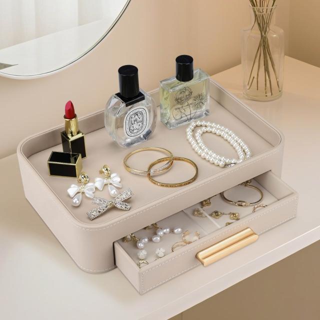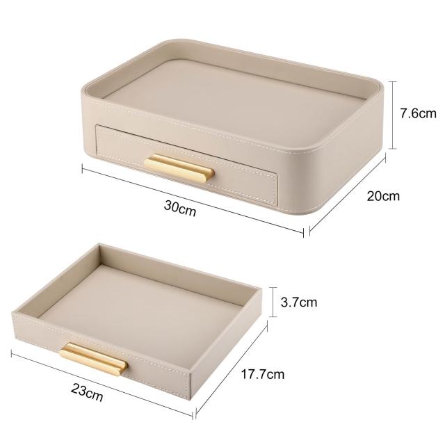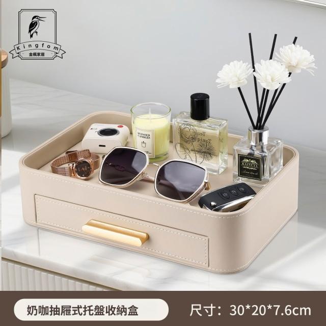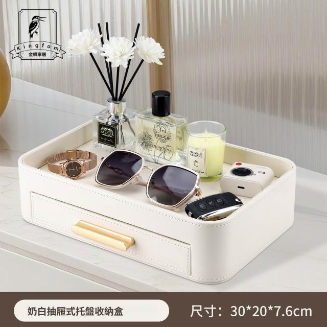 免運 免稅 新式托盤輕奢奶油風家用長方形桌面收納盒高顏值梳妝臺收納盤