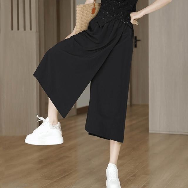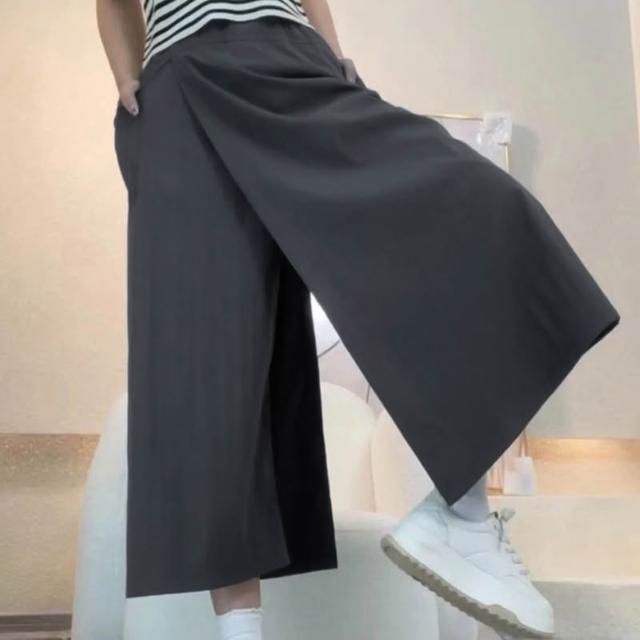免運 免稅 山本工裝褲防曬涼涼開叉裙褲女2026夏季薄款高腰闊腿松緊腰休閑褲