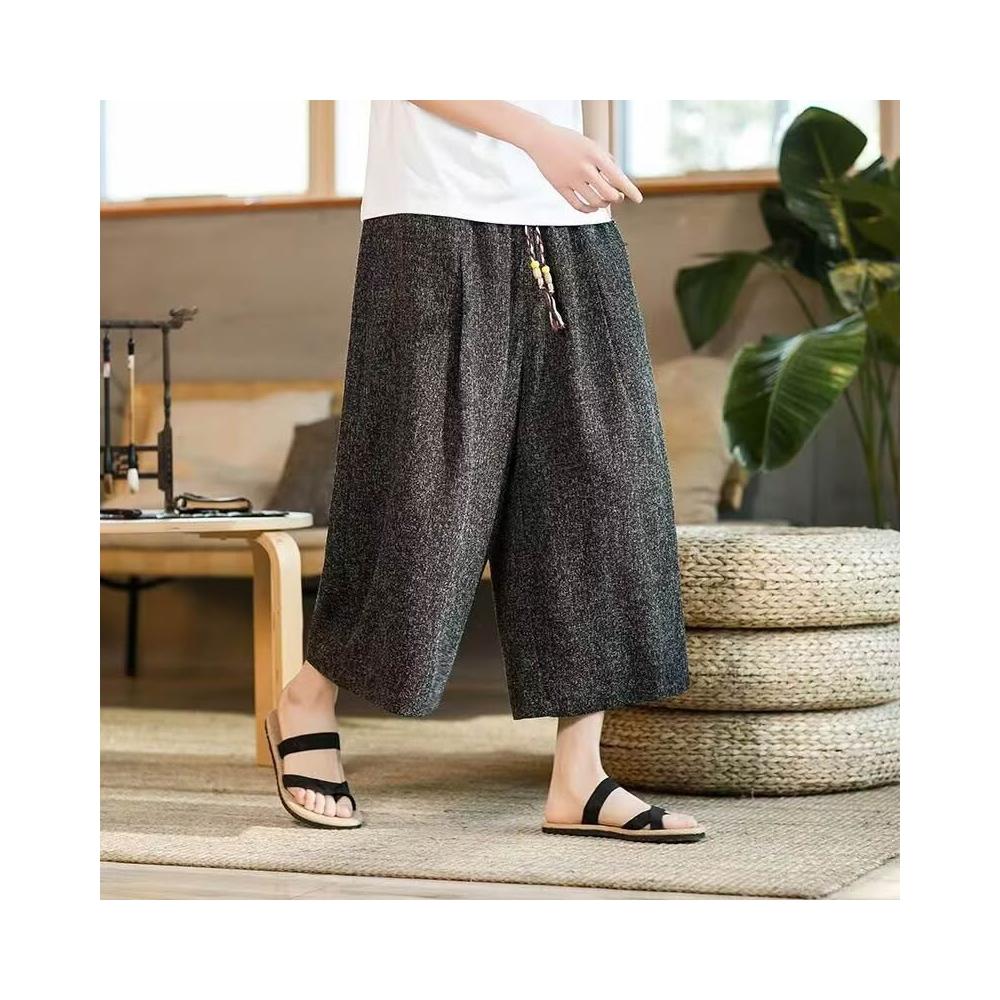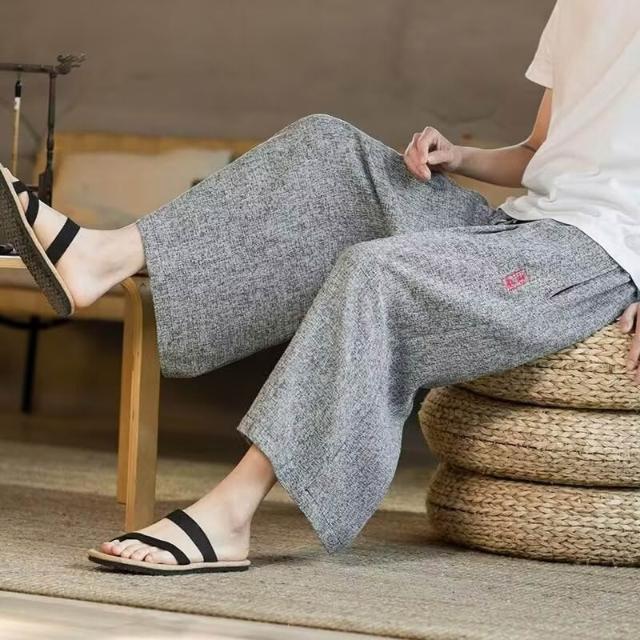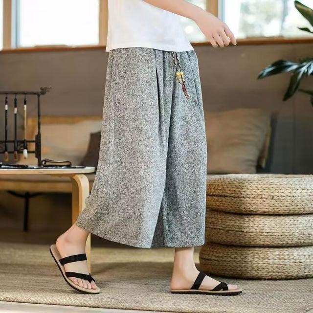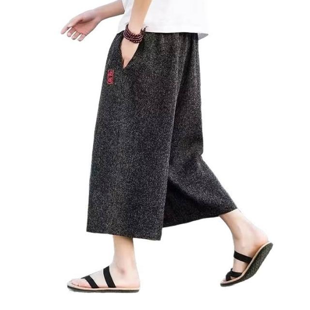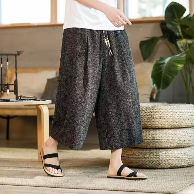 免運 免稅 2026夏季亞麻復古潮流男闊腿短褲輕薄寬松直筒潮流運動休閑褲批發