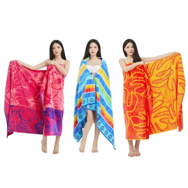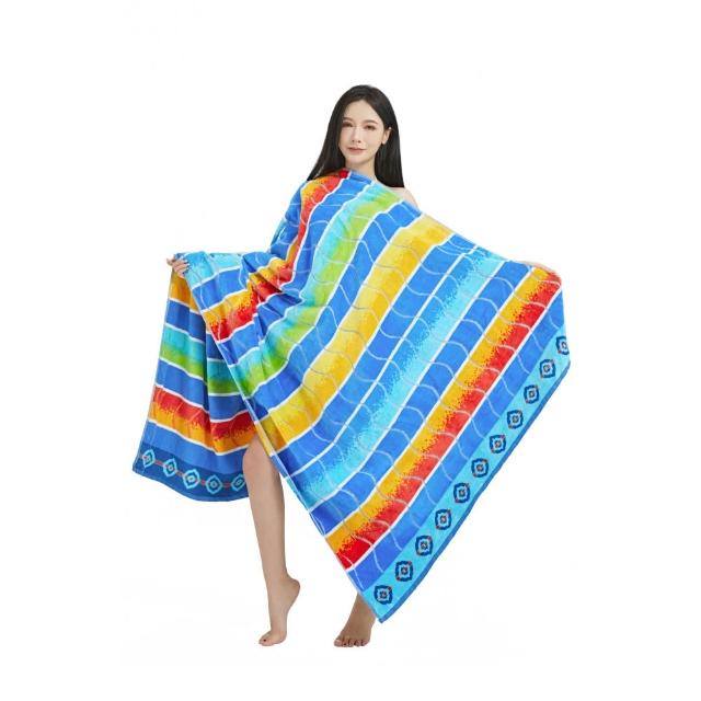 免運 免稅 歐美輕奢風大浴巾雙面色織割絨毛圈加厚純棉海邊遊泳浴室沙灘巾