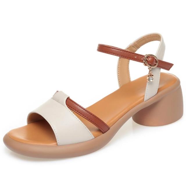 免運 免稅 中年女士高跟涼鞋女款新款夏季女鞋真皮厚底舒適時裝中老年媽媽鞋