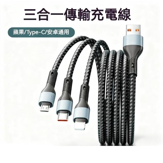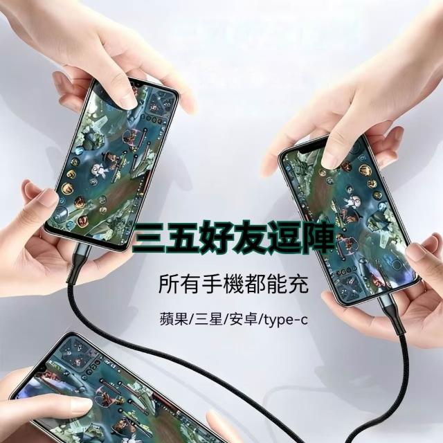 AiHome⚡一條搞定所有設備|三合一編織充電線|USB-A轉Type-C/Micro/Lightning|安卓/iPhone通用