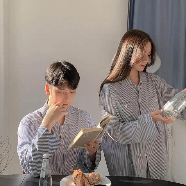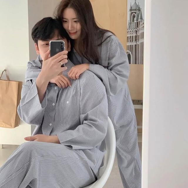 [現貨秒發⚡️]歐梵希韓國代購 韓國JUUNEEDU 情侶睡衣 Slow Stripe 直條紋 長袖套裝
