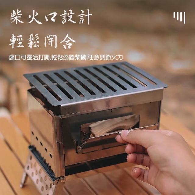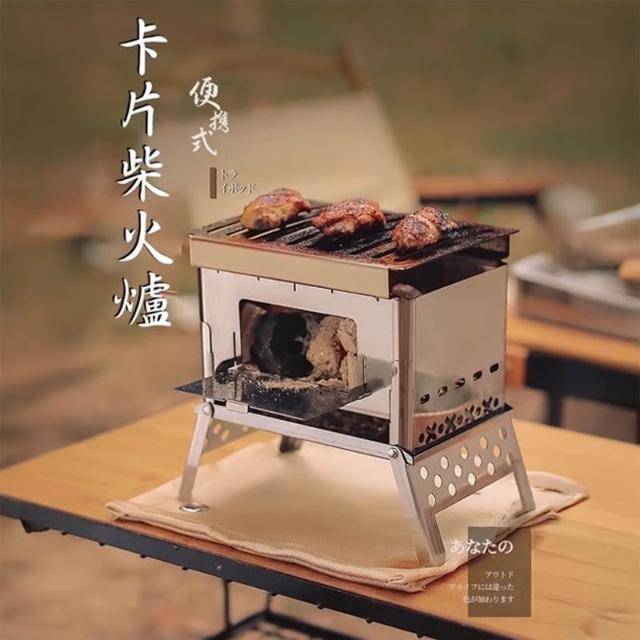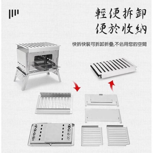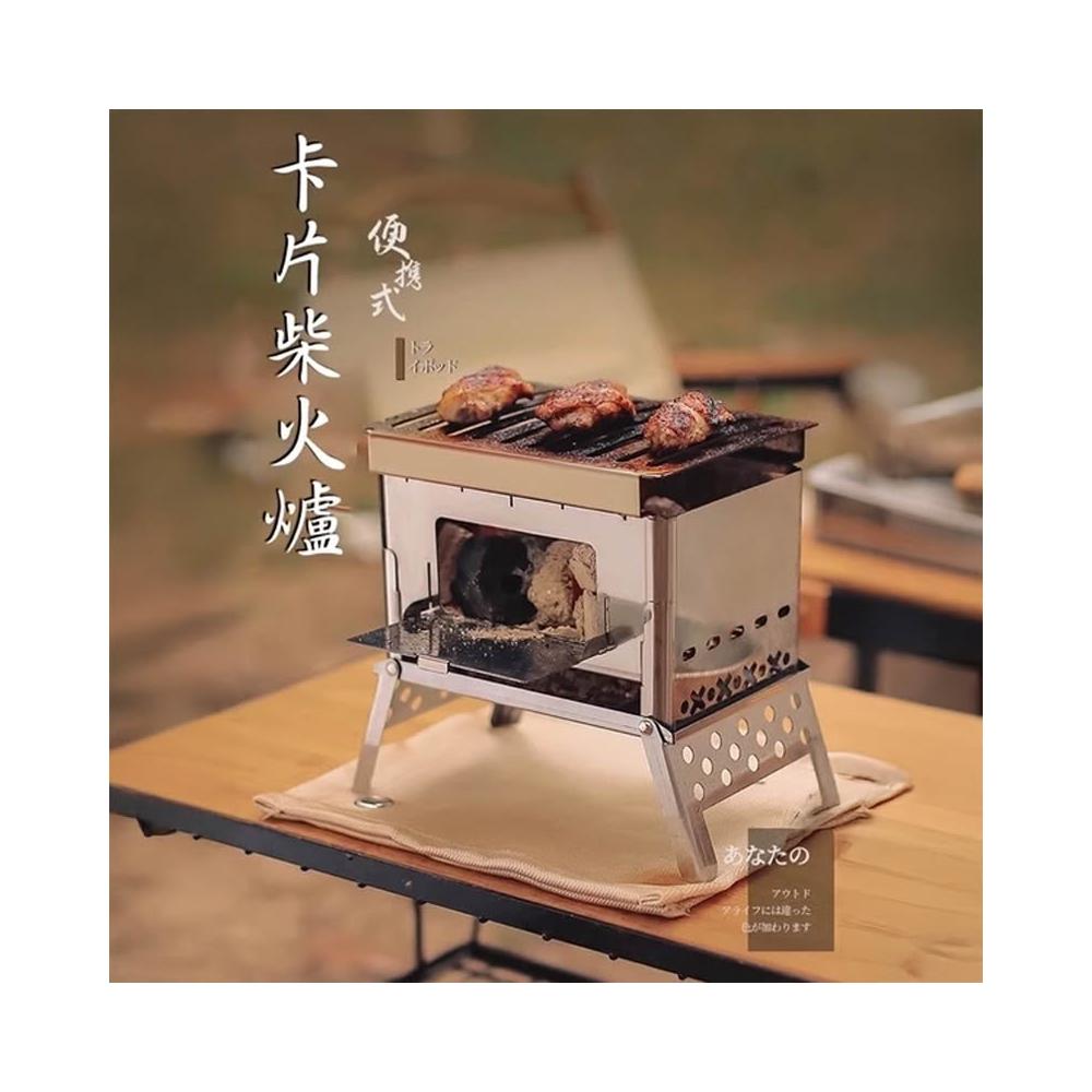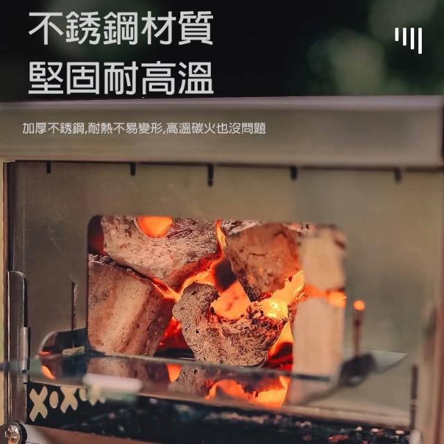 戶外露營柴火爐(附收納袋)卡片式焚火爐 類搖曳露營參考 露營焚火台 露營烤肉架 組裝式焚火爐
