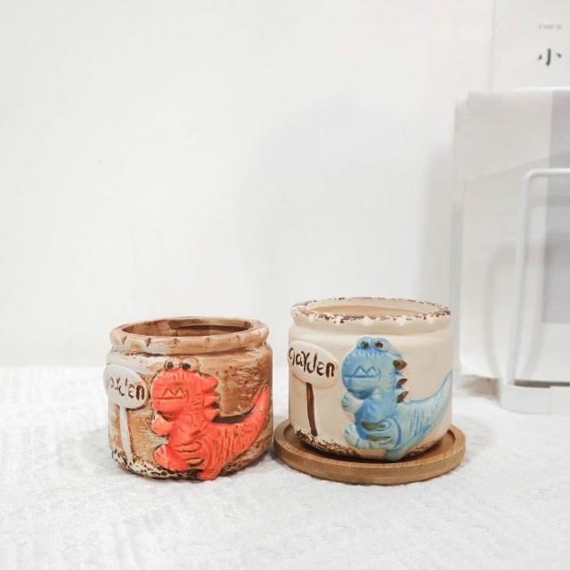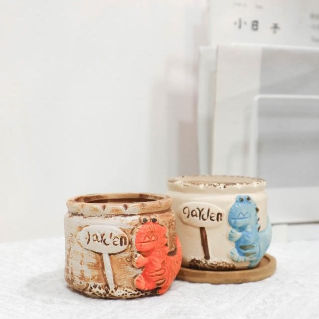 可愛恐龍盆器/ 陶瓷盆/ 花盆/ 多肉盆/ 粗陶盆 /清新可愛小盆栽 /矮盆 /透氣 /園藝 /彩色手繪盆