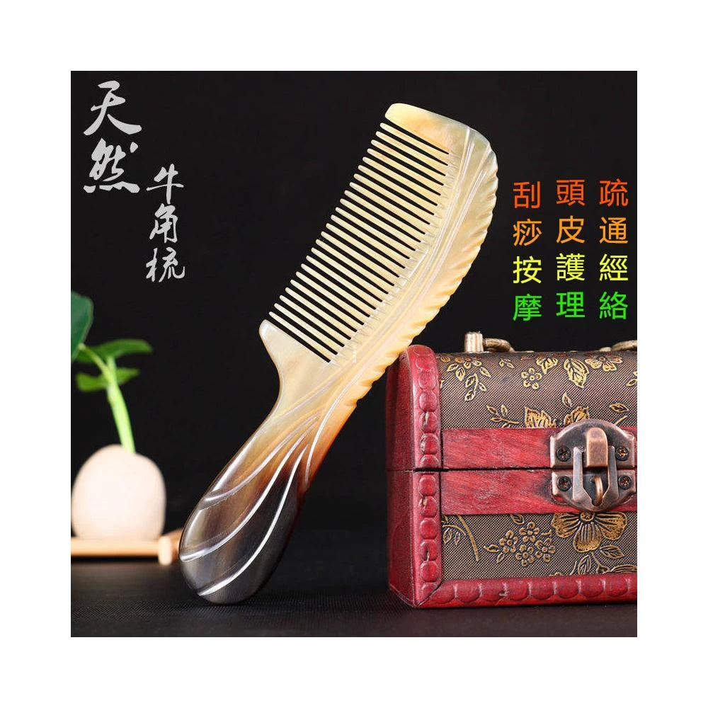 現貨 附發票牛角窄條打花梳 天然白牛角梳子 牛角刮痧梳 牛角按摩梳 防靜電防脫髮梳 頭皮按摩器 疏通經絡 全身按摩梳