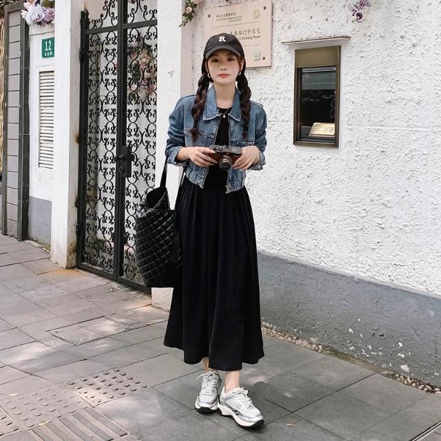 2026新款牛仔外套+黑色背心裙日常穿搭好駕馭顔值UP套裝韓版