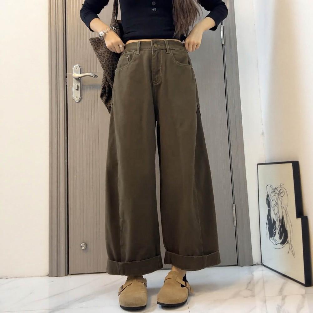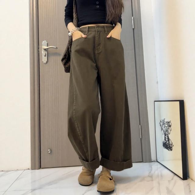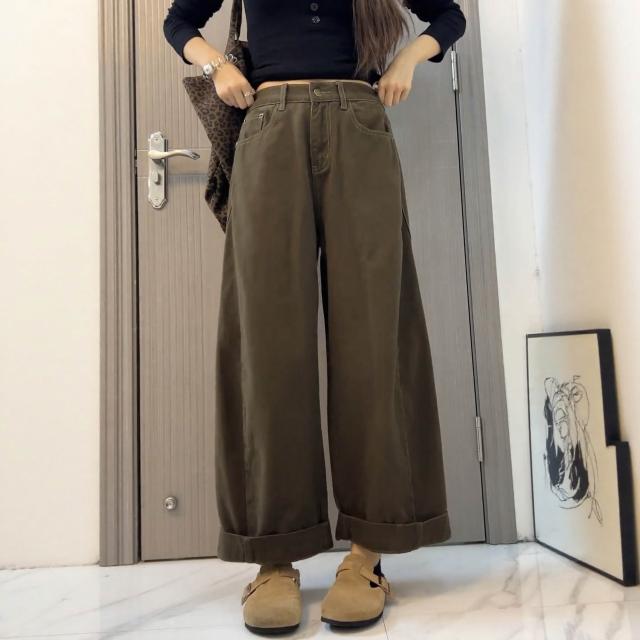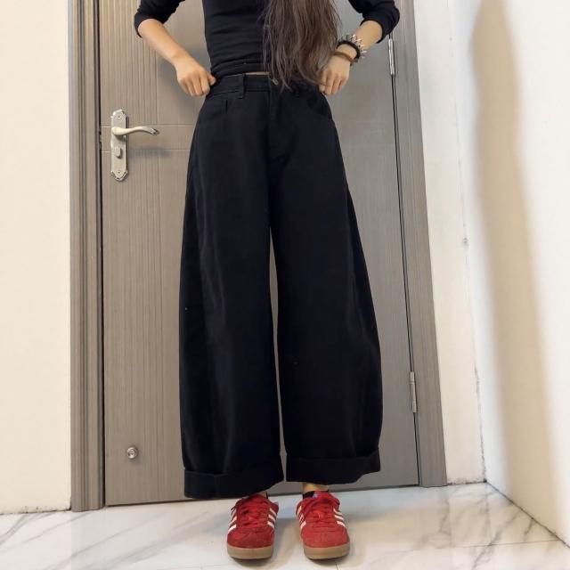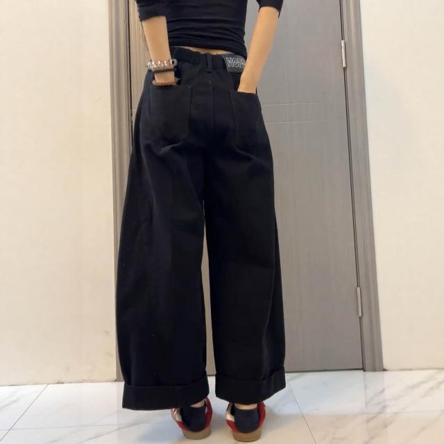 素行紀元大碼美拉德牛仔褲女秋季2026新款寬松闊腿褲胖mm顯瘦直筒老爹褲子