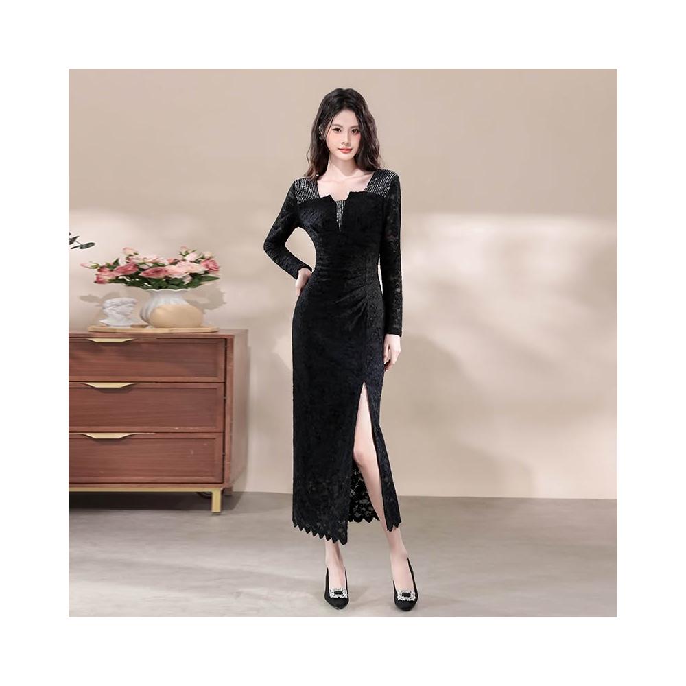 素行紀元貂毛拼接蕾絲連衣裙高級感氣質内搭顯瘦包臀裙