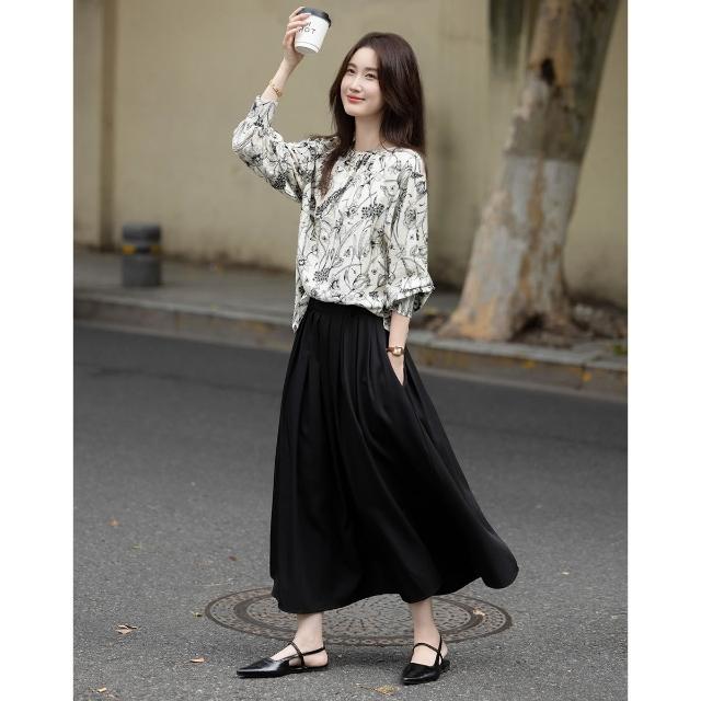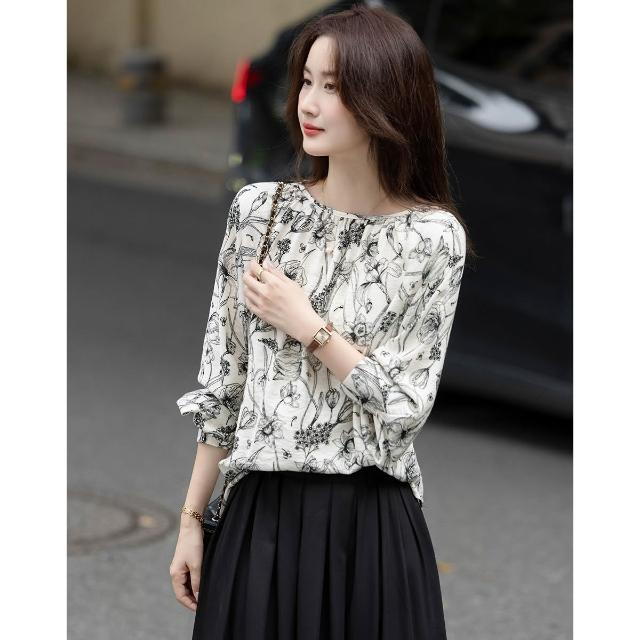 素行紀元2026秋季輕熟複古設計感斜領紐扣印花襯衫寬松小個子襯衣女裝上衣