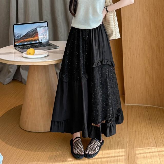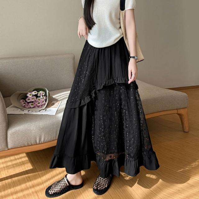 素行紀元白色中長款半身裙女2026春夏新款蕾絲拼接荷葉邊a字蛋糕裙長裙