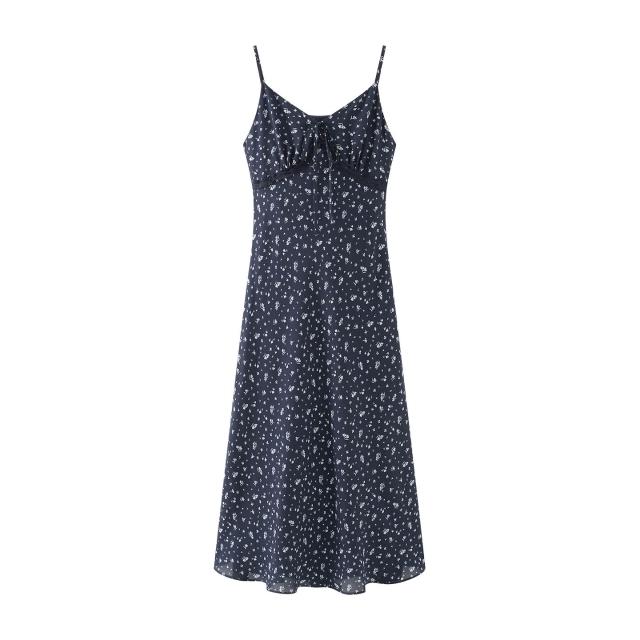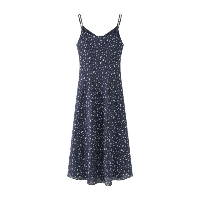 素行紀元 實拍仙女裙2026春夏季新款法式碎花吊帶A字連衣裙無袖長裙女裙子