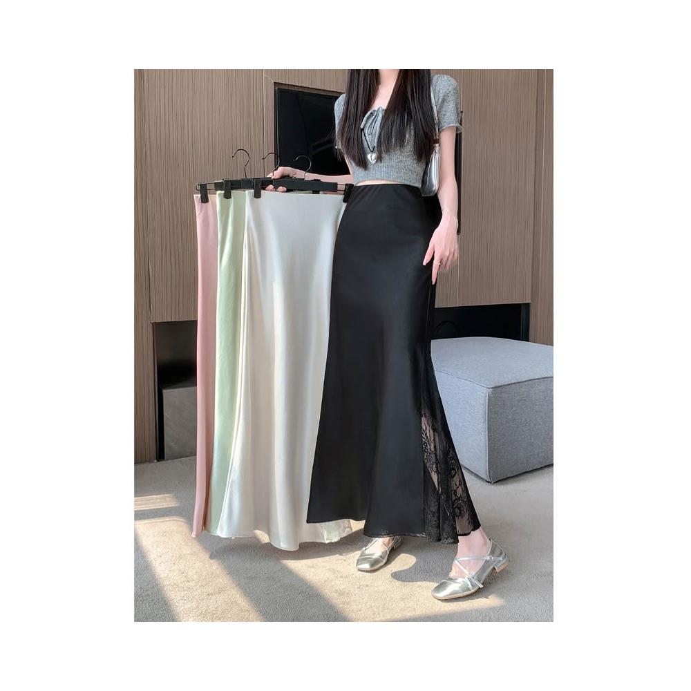免稅免運素行紀元 實拍視頻蕾絲拼接醋酸緞面新中式半身裙春夏國風溫柔氣質顯瘦裙子