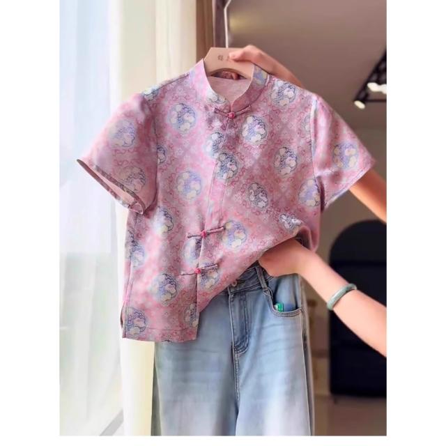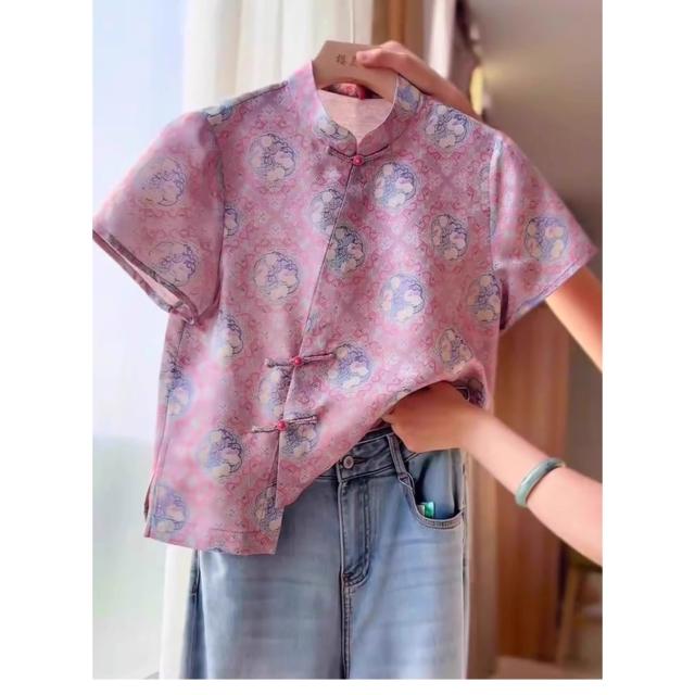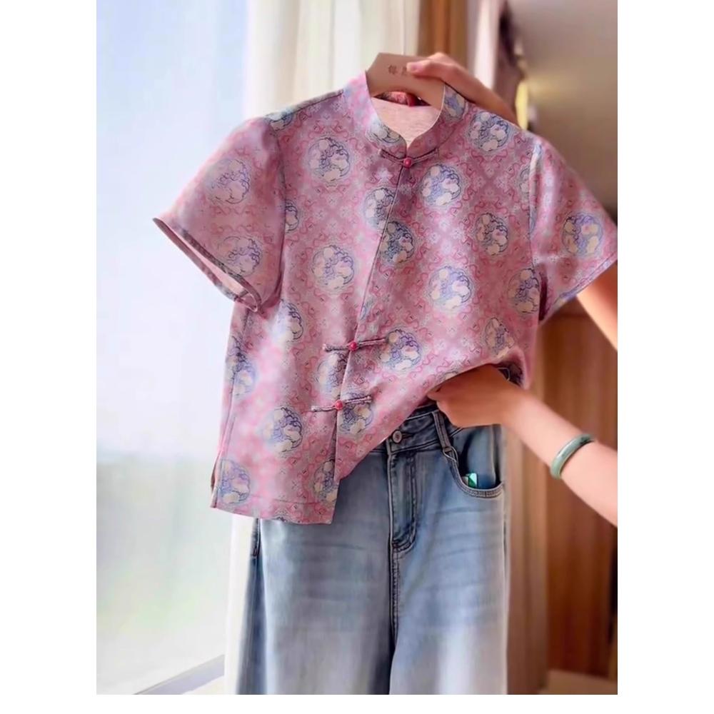 免稅免運素行紀元 新中式國風減齡粉色提花上衣女夏季新款溫柔小眾高級短袖