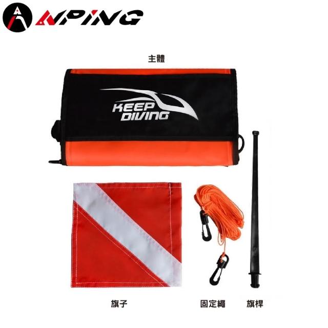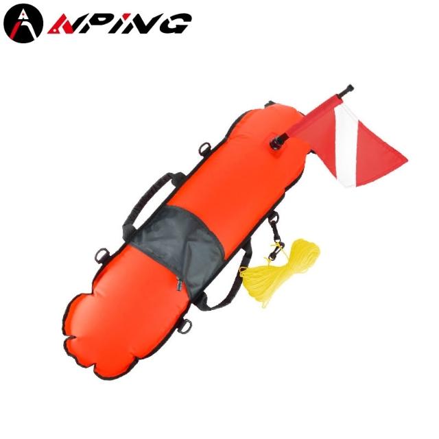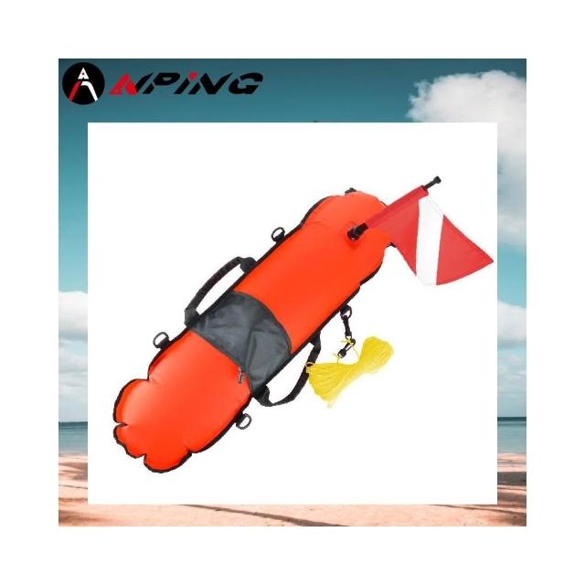ANPING 魚雷浮標 配旗子 | 潛水漁獵充氣浮球 | 橘色高能見度 | 長型浮標與信號警示 | 浮球 游泳 浮板