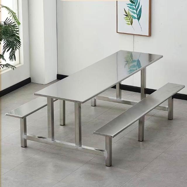 含稅/免運 員工食堂餐桌椅組合學校員工工廠飯堂4人6人8人位不銹鋼連體桌椅