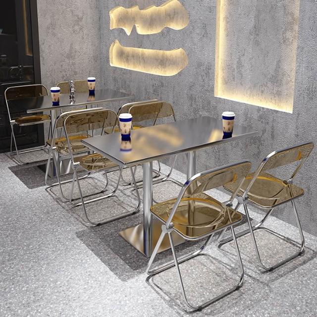 含稅/免運 工業風咖啡廳桌子不銹鋼酒吧桌椅輕奢簡約網紅小圓桌奶茶店餐桌椅