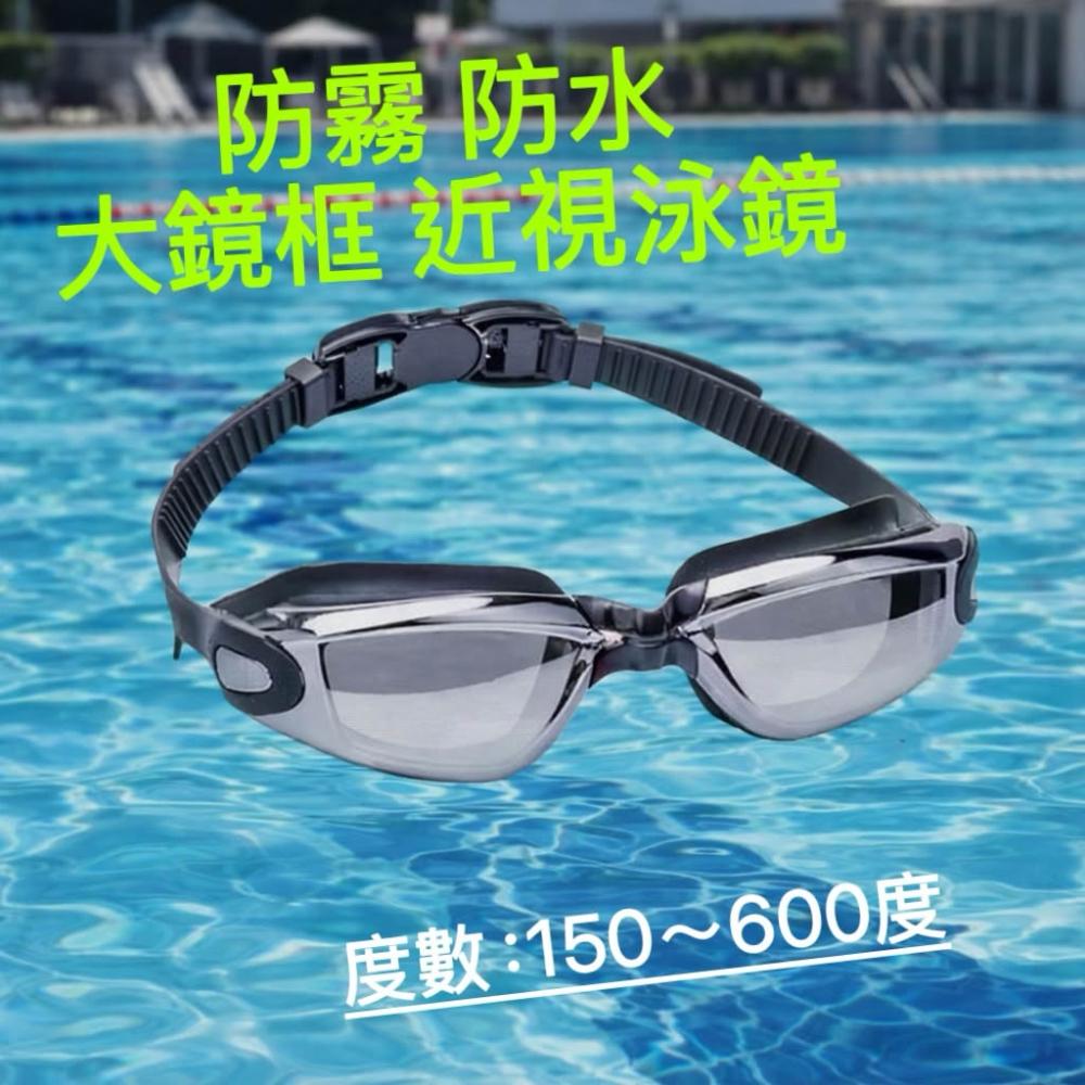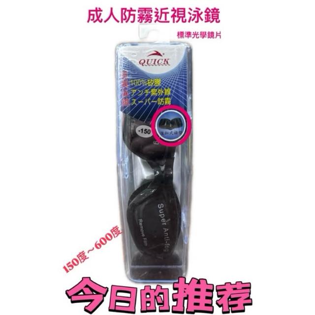 大鏡框近視泳鏡QUICK 成人泳鏡 150–600度|防霧防水 高清視野 可調鼻樑 平價近視 游泳眼鏡 後扣式頭帶