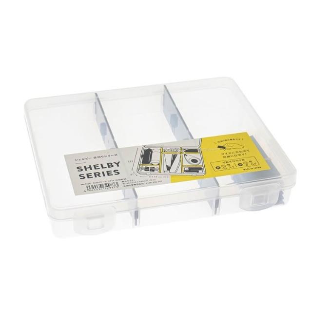 YAMADA 山田家電日本製 扁型透明隔板收納盒 釘書機 迴紋針 橡皮擦 便條紙 文具收納 辦公收納 可自行調整